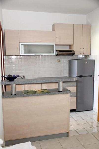 • Küche mit 2 Herdplatten, Kühlschrank, Wasserkocher sowie Geschirr und Besteck für 4 Personen